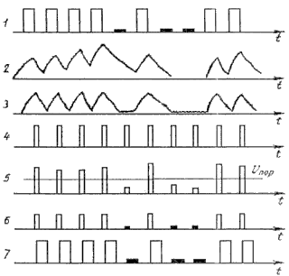 На рис. 1 показана структурная схема регенератора однополярного сигнала, а на рис. 2 - временные диаграммы регенерации сигнала.