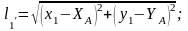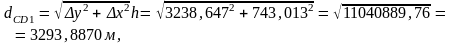 Теңдеудегі (3.1) Х1, Y1 дәл координаттардың белгісіз мағыналардың орнына жуықтас мағыналарды х1, y1 қояйық, және өлшенген ұзындықтардың мағыналарын аламыз: