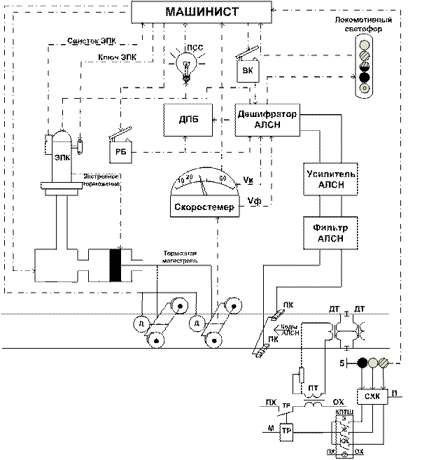 Рис. 1 Схема автоматической локомотивной сигнализации непрерывного типа