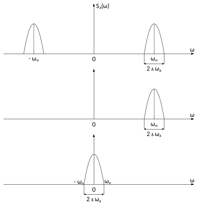A(t) – узкополосный сигнал, спектр которого сосредоточен в интервале частот от - Δ ωa до + Δ ωa, т.е. ωв = Δ ωа .