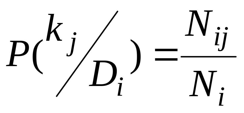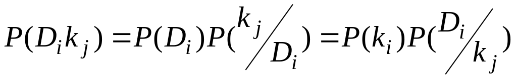 Метод основан на простой формуле Байеса. Если имеется диагноз Di и простой признак kj, встречающийся при этом диагнозе, то вероятность совместного появления событий (наличие у объекта состояния Di и признака kj)