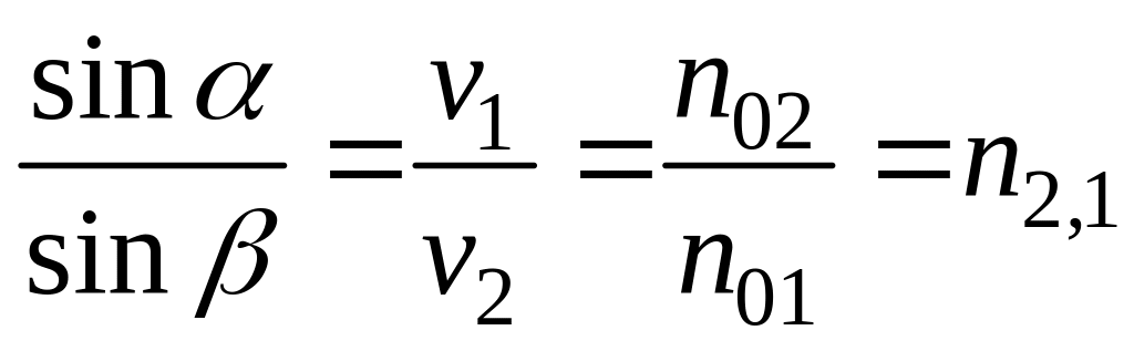 Таким образом, относительный показатель преломления двух сред равен обратному отношению скоростей света в этих средах. Отсюда следует закон преломления