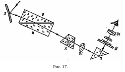Рефрактометр РЛ-2 основан на определении предельного угла преломления света в исследуемой жидкости, который, как указано выше, имеет прямую связь с показателем преломления. Основу оптики рефрактометра РЛ-2 составляют две прямоугольные призмы (рис. 16), между которыми помещается тонкий слой исследуемой жидкости.