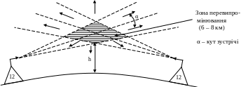 У випадку, коли тропосферні станції розташовуються в межах геометричної видимості не треба шукати зони перевипромінювання. Необхідно антени направити одна на одну.