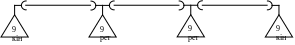 Рис.1. Трьохінтервальна радіорелейна лінія.