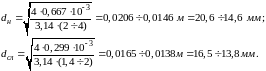 Вычислим возможные диаметры гидролиний, используя приведенные выше интервалы изменения рекомендуемых скоростей