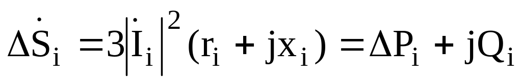 Полная мощность, теряемая в каждом элементе схемы сети, вычисляется по формуле