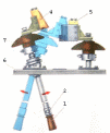 Разъединитель предназначен для включения и выключения силовой цепи электровоза в обесточенном состоянии. Разъединитель РВН-004Т представляет собой выключатель рубящего типа. Для переключения замок разъединителя отпирают ключом кнопочного выключателя КУ.