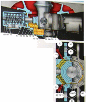 Шаровая связь служит для передачи продольных усилий от тележки на кузов и наоборот. Она состоит из шарового шарнира 76 с впрессованной в него латунной втулкой 78, свободно сидящей на хвостовике шкворня 80. Шарнир расположен во вкладыше 75, который в свою очередь размещен в корпусе и зафиксирован стопорным кольцом 74. В брусе шаровой связи специальным валиком крепится сегментообразный упор, который имеет паз, позволяющий одновременное перемещение шкворня в поперечном направлении и поддерживание корпуса по высоте