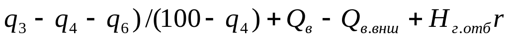 т, і пл — присоси повітря в топці і в пилосистемі (див. гл. 3); Н°гв, Н°х.в - ентальпія теоретично необхідного об'єму повітря при температурах гарячого і присмоктаного холодного повітря, кДж/кг (див. гл. 2 і додаток); Qв.внш - теплота повітря, підігрітого поза паровим котлом, кДж/кг (див. гл. 3); Hг.от6, r - ентальпія і частка газів, відбиваних на рециркуляцию (див. гл. 3).