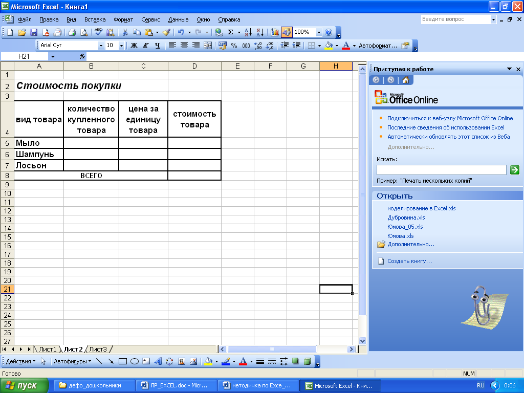 в ячейку D5 записать формулу для подсчета стоимости мыла,