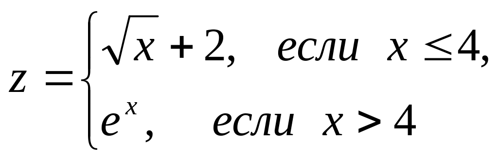 Задание 3. Вычислить значение функции при значениях аргумента, взятых из различных промежутков, учитывая область определения функции: