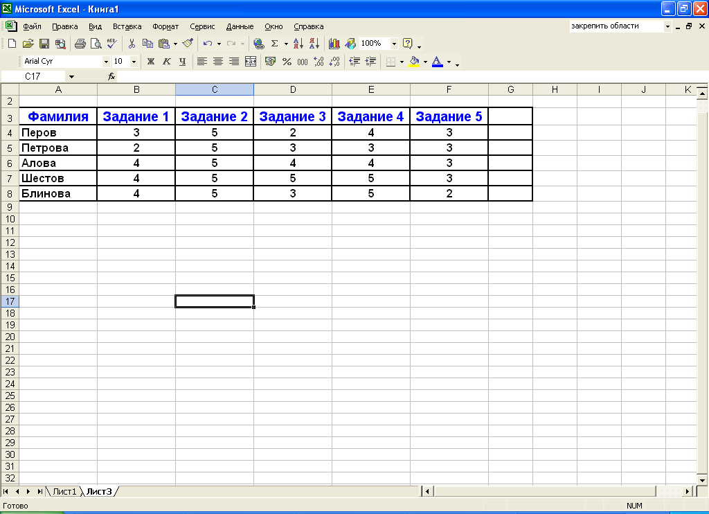 Задание 3. Сохранить эту рабочую книгу в своей личной папке под именем списки в Excel.xls.