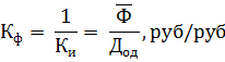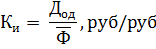 Обобщающая оценка использования ОПФ осуществляется на основе стоимостных показателей, к которым относится фондоотдача (Ки), характеризующая величину доходов, приходящуюся на рубль стоимости ОПФ: