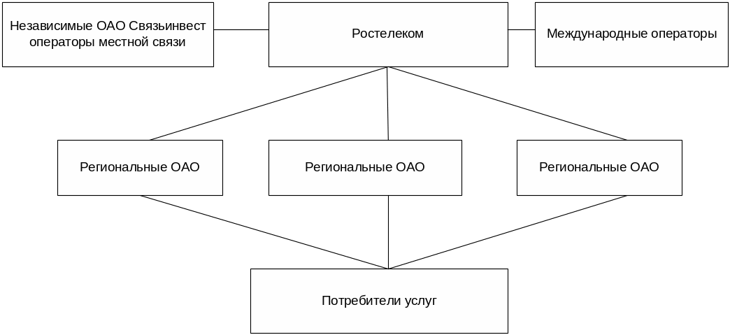 Структура электросвязи (рис. 1) сформирована по территориальному принципу, в соответствии с которым на региональные предприятия (ОАО «Электросвязь») возложены задачи по обеспечению услугами электросвязи соответствующих территорий.