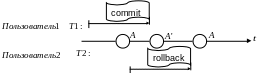 Т: а1, а2, …, аn; Rollback (все действия отменяются);
