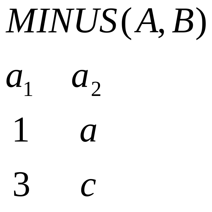 Разность двух отношений – отношение, включающее все кортежи, входящие в первое отношение и не входящие во второе.