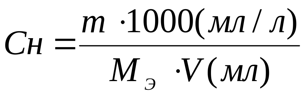 СН,1 V1 = СН,2 V2 или N1 V1 = N2 V2