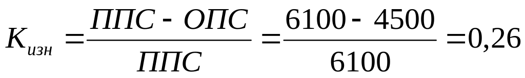 Остаточная первоначальная стоимость – это стоимость основных фондов в ценах его постановки на баланс с учетом износа на дату определения. Она равна полной первоначальной стоимости основного капитала, уменьшенной на величину износа, накопленного, по данным бухгалтерского учета, к этому моменту: ОПС = ППС – И.