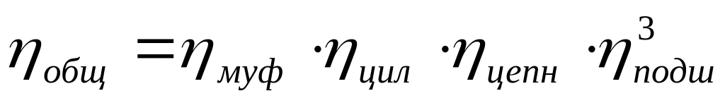 По табл. 1.1 выбираем ηмуф = 0,98; ηцил = 0,97; ηцепн = 0,96; ηподш = 0,99;