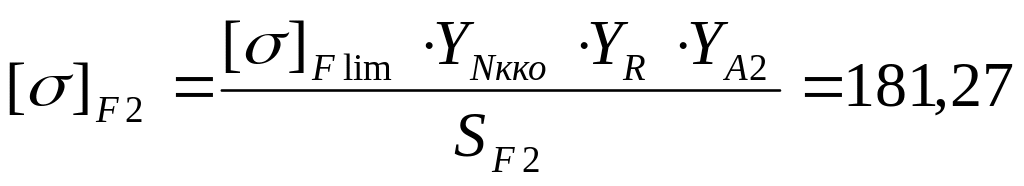Для колеса: [σ]Flim 2 = 1,75∙ HBср = 1,75 ∙ 246 = 431 МПа.