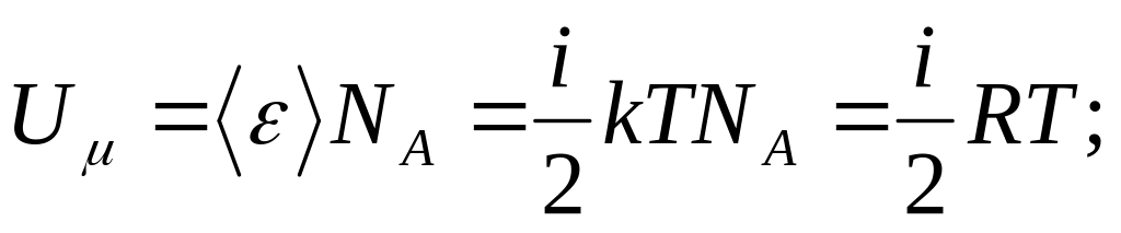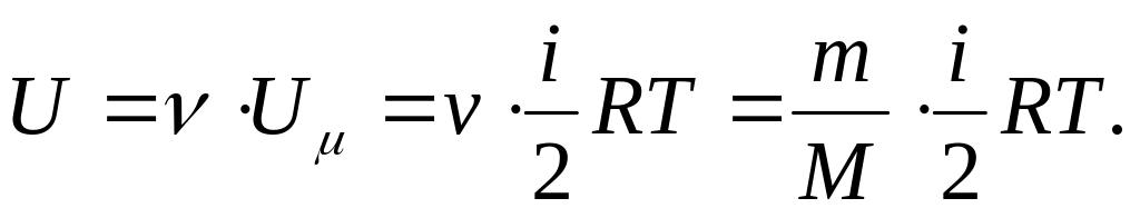 В идеальном газе молекулы между собой не взаимодействуют и их потенциальная энергия равна нулю. Поэтому внутренняя энергия одного моля идеального газа Uμ и произвольной массы т газа U будут соответственно: