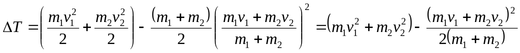 После преобразований получим выражение для потери кинетической энергии в результате абсолютно неупругого удара: