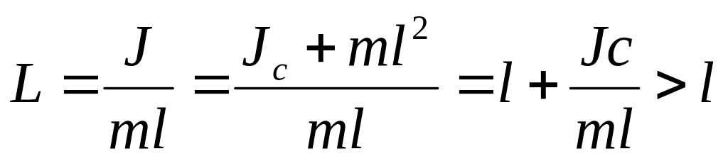 Т.е. приведенная длина L физического маятника всегда больше длины l эквивалентного математического маятника (ОО’ всегда больше ОС).