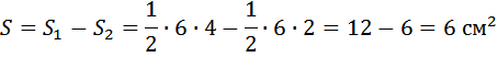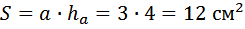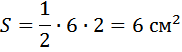 В нашем случае, основание мы обозначили, синим цветом, оно равно 6 см, высота – красным, равна 2 см (цвета мы использовали для наглядности).