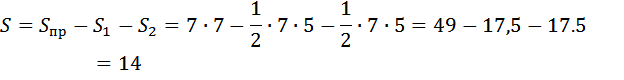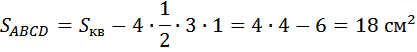 Нам теперь остаётся из площади прямоугольника (в данном случае квадрата) отнять площади трёх треугольников.