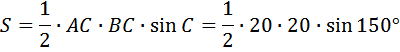 Эта задача от предыдущей отличается тем, что угол при её вершине тупой. Используем ту же формулу для нахождения площади треугольника: