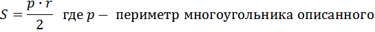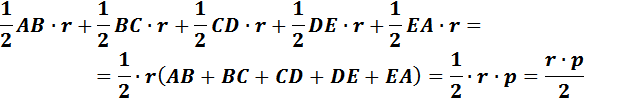 Разобьём многоугольник на треугольники. У каждого своё основание, но высота у всех одна – это радиус окружности.