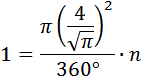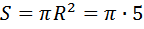 Сам радиус для площади круга нам не нужен, достаточно найти квадрат радиуса (именно он нужен для формулы):