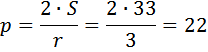27639. Около окружности, радиус которой равен 3, описан многоугольник, площадь которого равна 33. Найдите его периметр.