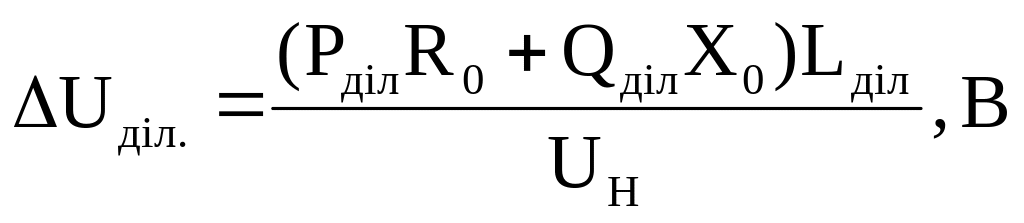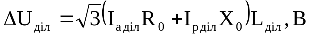 ∆Uділ - втрата напруги на ділянці у вольтах, В;