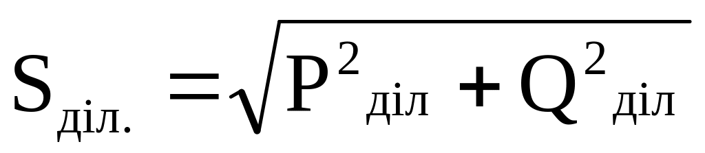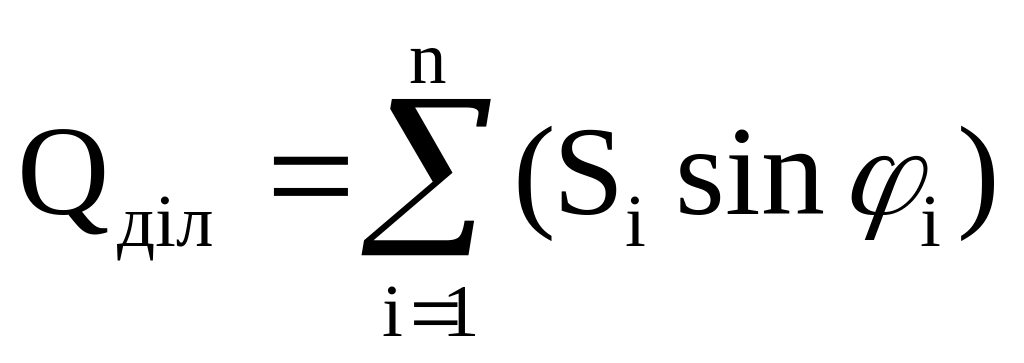 Qділ.- реактивна потужність навантаження на ділянці, кВар