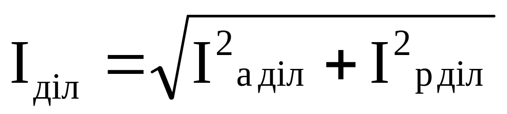 Ір діл. - реактивний струм навантаження на ділянці, А