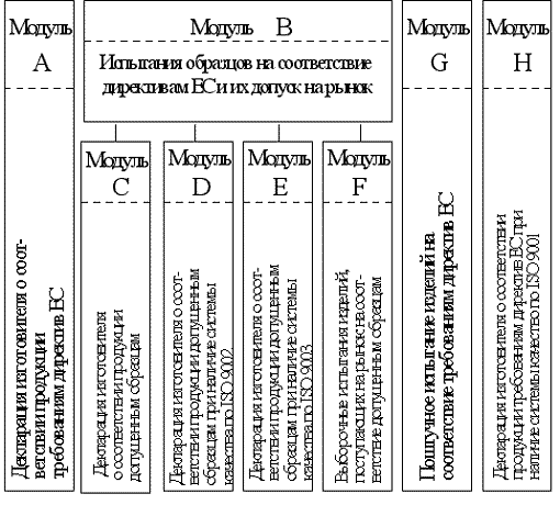 1. Решение Совета Европы от 13 декабря 1990 года об использовании модулей для различных фаз процедуры оценки соответствия (90/683/EWG), устанавливающее восемь формализованных процедур оценки соответствия продукции европейскому законодательству, которые отчасти могут комбинироваться друг с другом.