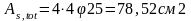 принимаем 3Ø22 А – III общей площадью AS = 11,4см2.