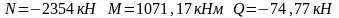 Нормативное значение усилий, получаем делением расчетных на усредненный коэффициент надёжности по нагрузке γf =1,15, т.е.