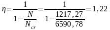 Коэффициент η определяется по формуле: