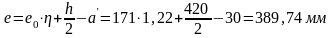 Умножим на этот коэффициент значение е0, и определим эксцентриситет приложения силы N относительно оси, проходящей через центр тяжести растянутой арматуры