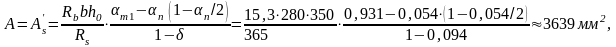 где, ( , так как арматура ненапрягаемая, RS =365МПа для AIII) – напряжение, принимаемое для класса АIII;