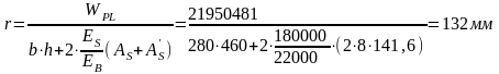 Значение r (расстояние от центра тяжести приведенного сечения до ядровой точки, наиболее удаленной от растянутой зоны, трещинообразование которой проверяется) определяется для элементов в зависимости от условия: