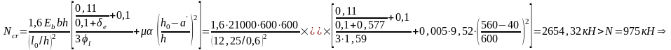 Поскольку полученное армирование существенно превышает армирование, принятое при определении Ncr ( = 0,005), значение Аs определено с „запасом", и его можно несколько уменьшить, уточнив значение . Принимаем = (0,009 + 0,005)/2 = 0,007 и аналогично вычислим значение Аs: