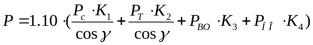 Pc, Pт, PВО, PНО - номинальная мощность силовых токоприемников, технологических потребителей внутренних и наружных осветительных агрегатов, кВт.;