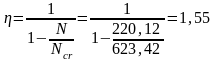 При непродолжительном действии полной нагрузки и при непродолжительном действии всей нагрузки φl = 1, при продолжительном действии постоянной и длительной нагрузки φl = 1,5; η = 1.2 для канатов.