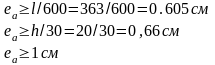 Принимаем e0 = ea = 1cм. При ea< 1/8h = 30/8 = 3.75 см l0 = 0.9l = 270cм.