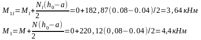 Сжимающие усилия в элементе N = 220,12кН, Nl = 182,87кН.