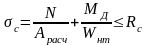 Найдем нормальные напряжения и сравним их с расчетным сопротивлением: